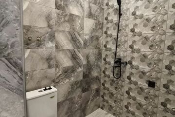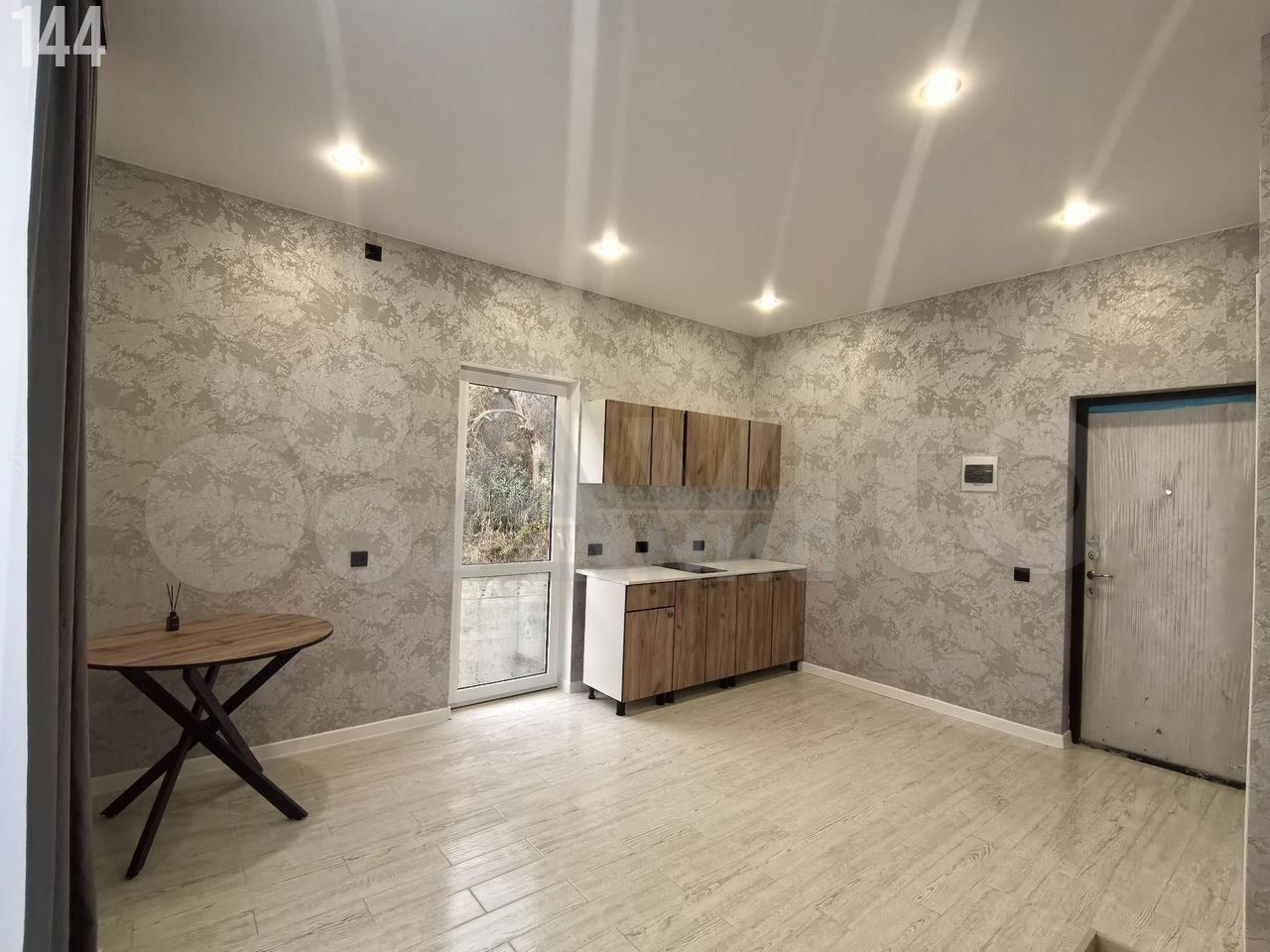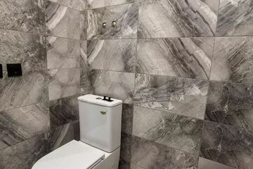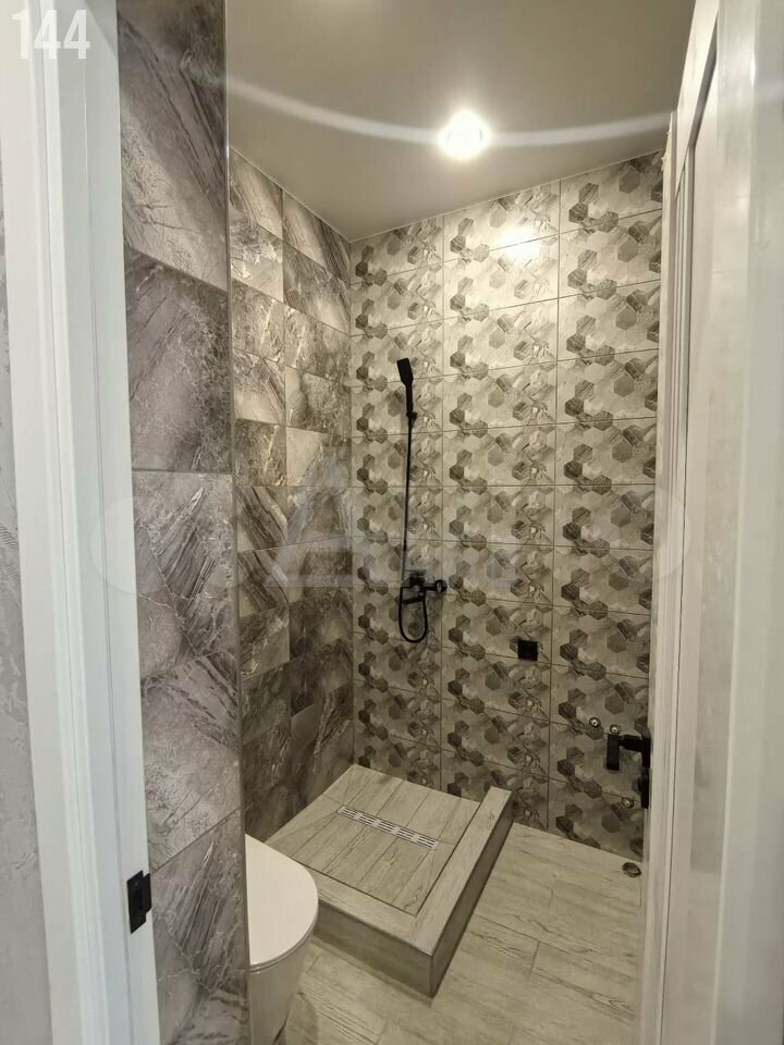 - Теплый, водяной пол, покрыт плиткой под ламинат. Натяжные потолки. Санузел плитка.