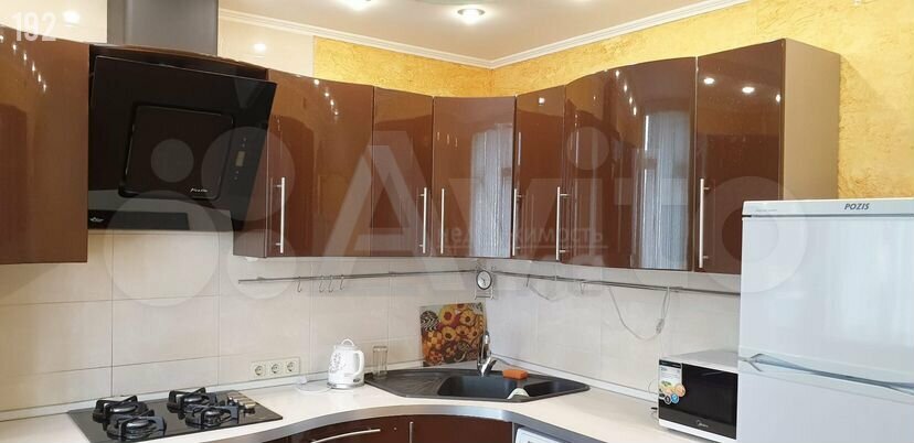 В квартире выполнен качественный ремонт с использованием теплых полов. Просторная кухня оборудована встроенной техникой, включая холодильник и духовой шкаф. В комнате установлен кондиционер и шкафы для хранения вещей. Ванная комната разделенная, оформлена плиткой.