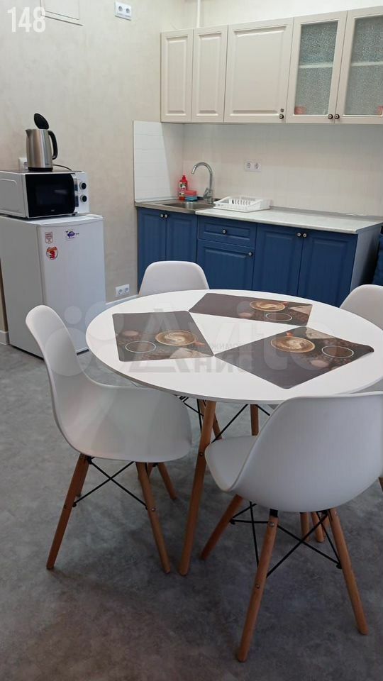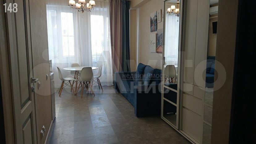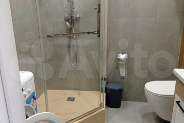 В квартире установлен кондиционер и холодильник, а также шкафы для хранения вещей. Просторная кухня оборудована всем необходимым для комфортного приготовления пищи. Санузел совмещенный, выполнен в светлых тонах и оснащён душевой кабиной.