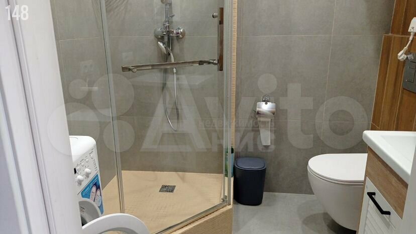 В квартире установлен кондиционер и холодильник, а также шкафы для хранения вещей. Просторная кухня оборудована всем необходимым для комфортного приготовления пищи. Санузел совмещенный, выполнен в светлых тонах и оснащён душевой кабиной.